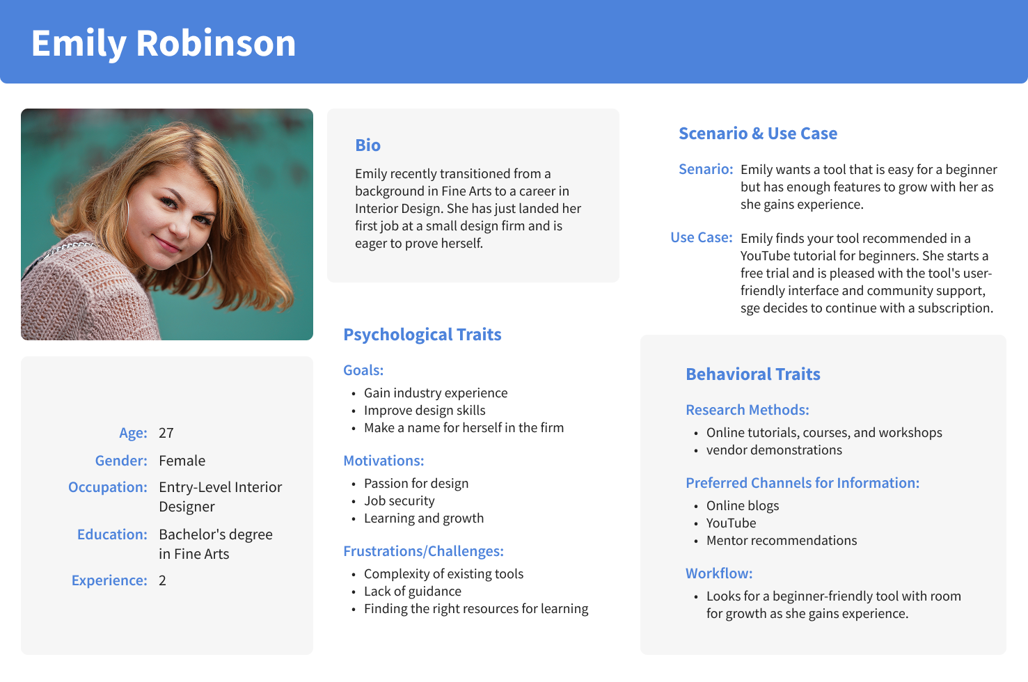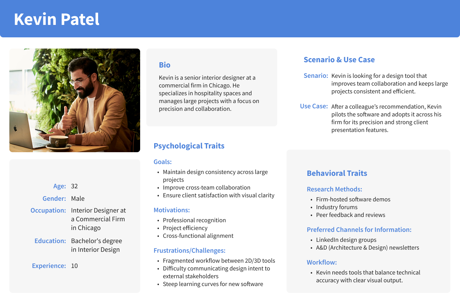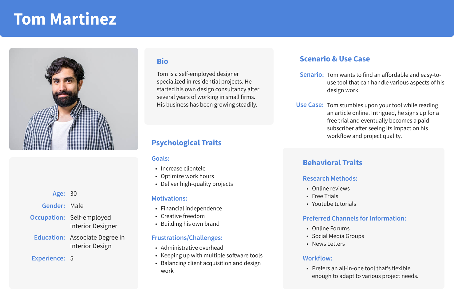 These insights highlighted the need for a smoother, more intuitive tool tailored to interior designers.