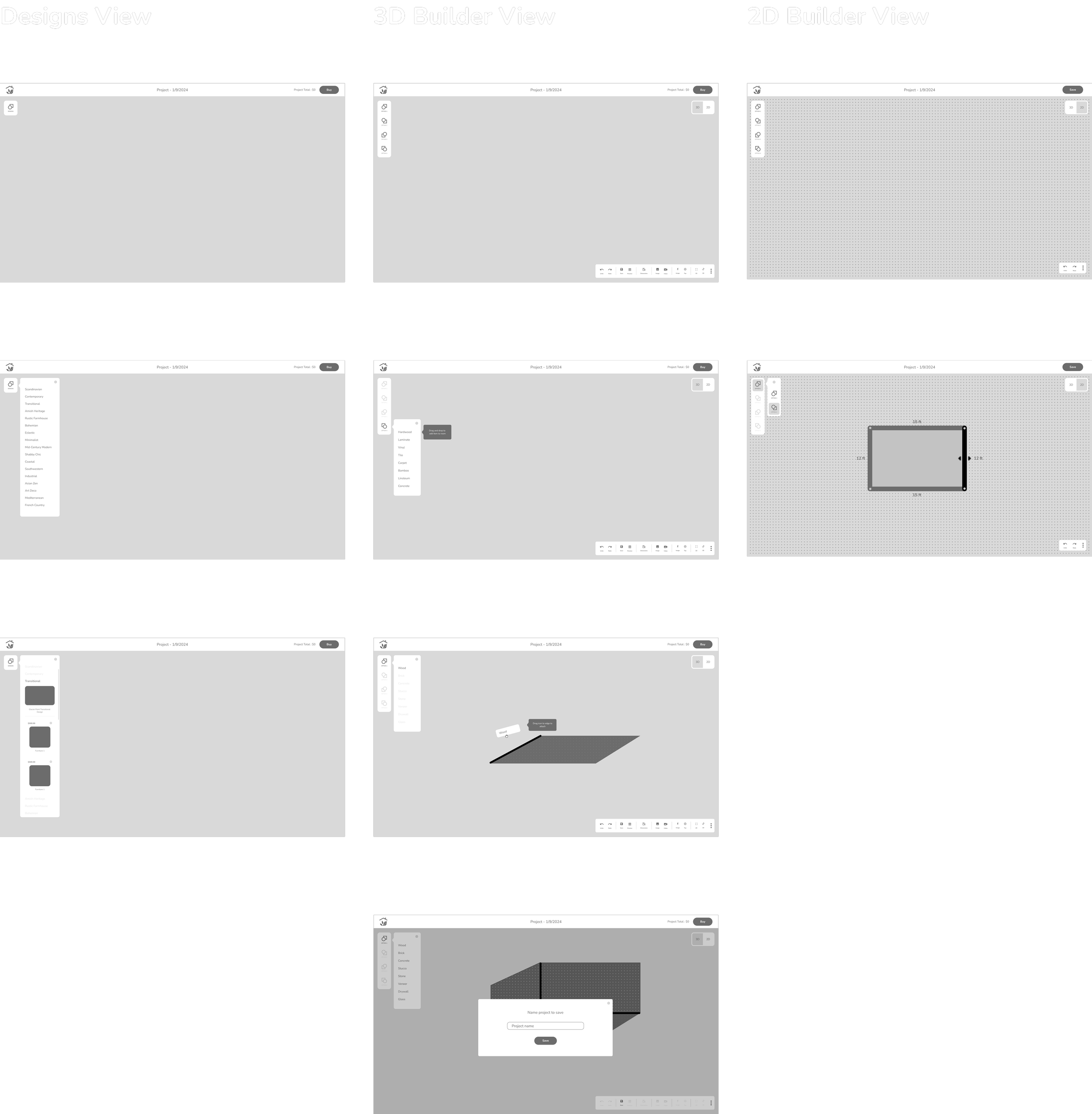 To explore layout and functionality early in the design process, I created low-fidelity wireframes that focused on core user flows such as room editing, navigation, and client review. These wireframes helped validate content structure and interaction patterns before moving into high-fidelity UI design.
