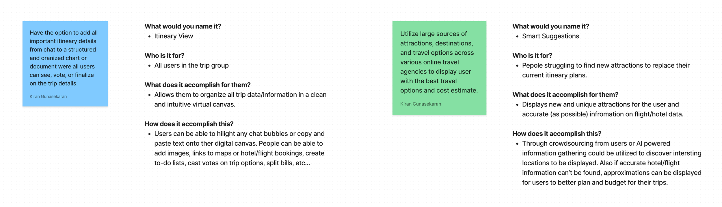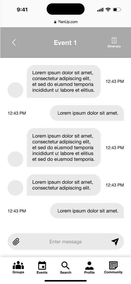 “Itinerary View” Allows users to organize ideas they discussed in the group chat.