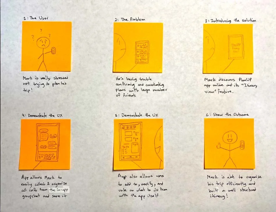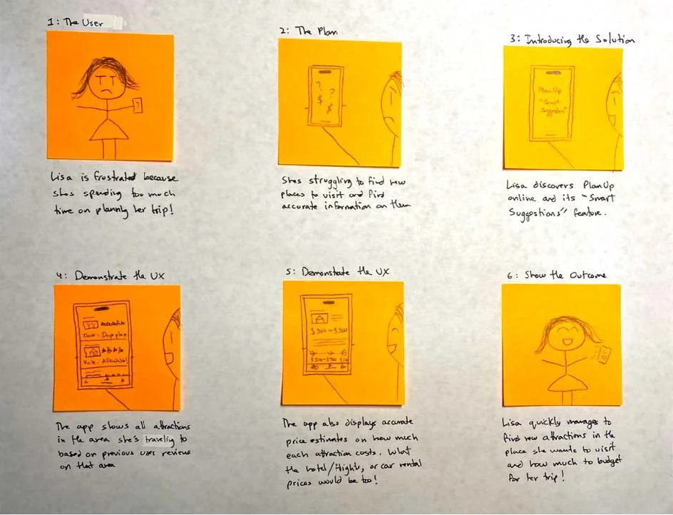 To better ideate the user needs visually, I created a storyboard for each of the features I created while brainstorming solutions.