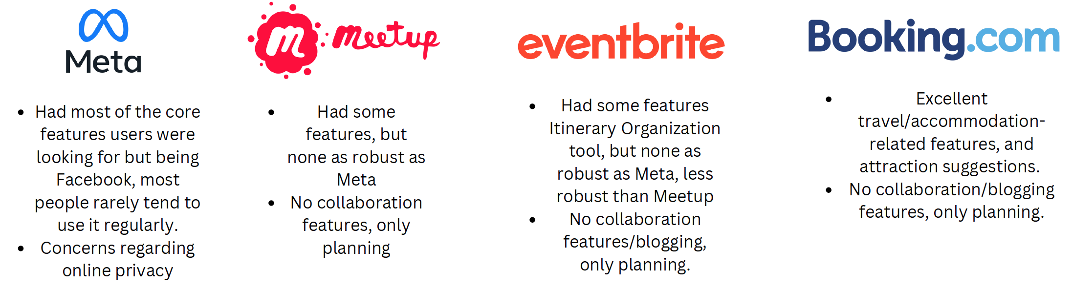 For Competitive Analysis, I decided to analyze 4 main competitors and their services