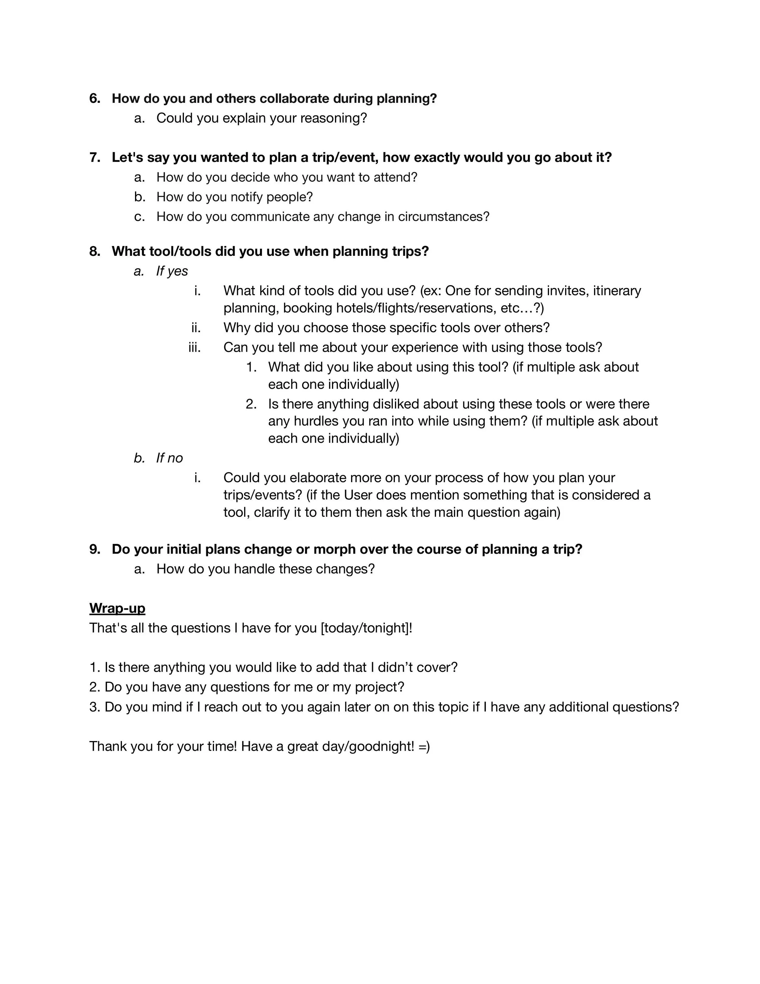 For User interviews, I mainly focused on how users plan their trips, what kind of people they invite, past experiences,