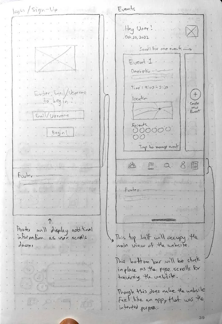 Also, further brainstorming made me realize that it would be more intuitive for the user if the mobile port of the website was designed to function more like an app with a bottom navigation bar all within the mobile browser.