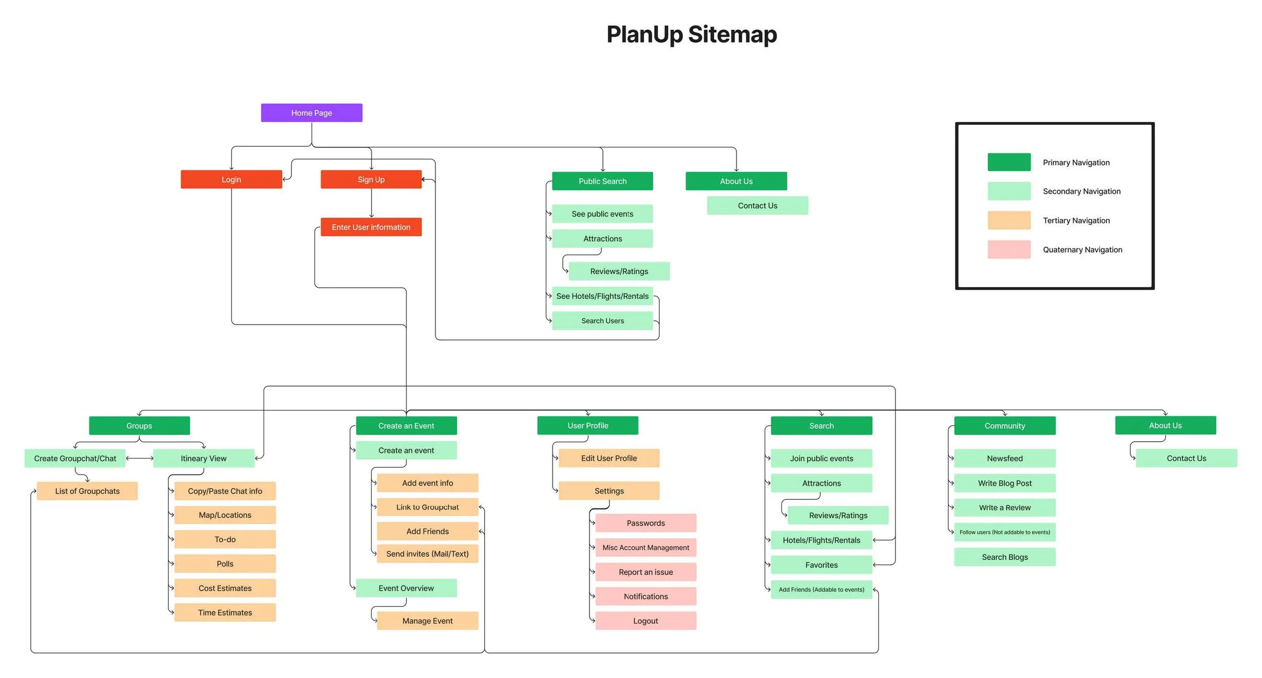 After a Card Sort exercise, I created a basic site map of the website. (Note this specific layout changed somewhat during the design process)